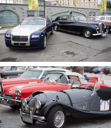Rolls-Royce 60-х годов, BMW 1968г., Cadillac 1941г., Mercedes Benz 1956г., Chrysler 1949г., Buick Limited 1958г., Москвич / М-401 1950г., Porsche /911S 1969г., Chevrolet / Camaro 1967г., Lincoln Continental Mark V 1960г, Dodge Charger 1969г., Ford / Thunderbird 1961г., ЗАЗ / 965А 1961г., Cardi /(Boby) 995г., и многие другие. Среди конкурсантов, участвующих в ралли, были целых пять поистине уникальных автомобиля Rolls-Royce 1960-65 года.
