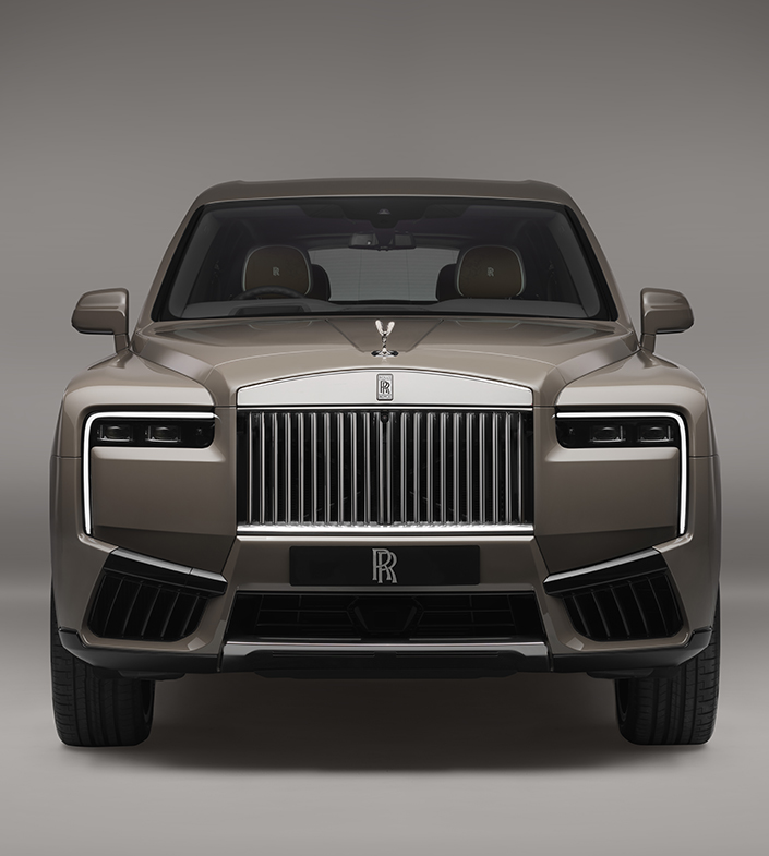 Вертикальные фары и дневные ходовые огни вдохновлены высокими небоскребами и городскими пейзажами. Культовая решетка радиатора с подсветкой, которую впервые можно увидеть на Cullinan, обновлена за счет более низкой передней кромки и геометрической "линии горизонта".