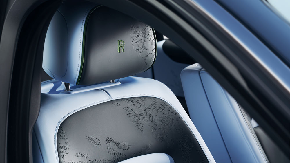Дизайн сидений с перфорацией искусно повторяет формы и тени облаков над домом Rolls-Royce в Гудвуде. На кожаной обивке выполнено более 107 000 отдельных отверстий толщиной 0,8 и 1,2 миллиметра.