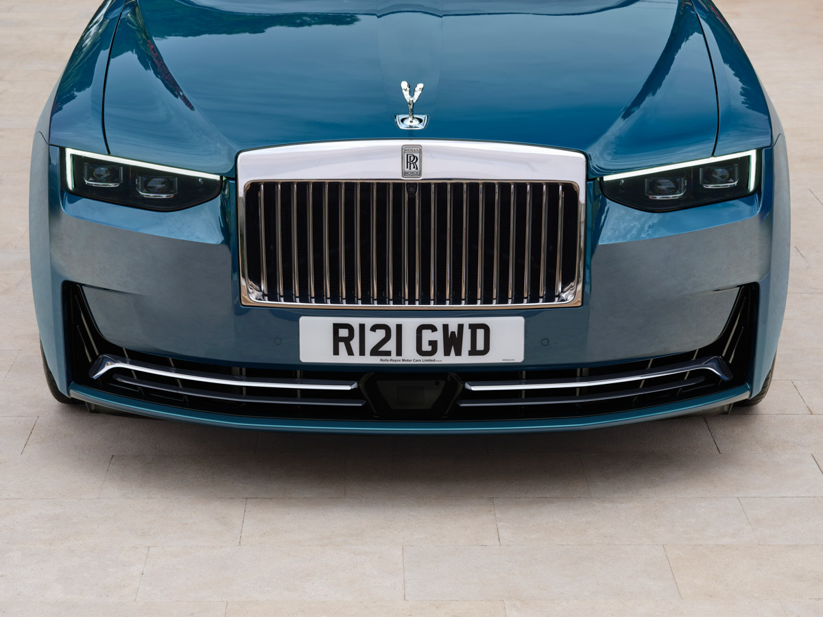 Ghost Series II как никогда прежде соответствует чистому, монолитному дизайну Rolls-Royce. Передняя часть автомобиля стала воплощением лаконичной и современной решётки радиатора Rolls-Royce Pantheon с подсветкой – одного из элементов дизайна Rolls-Royce, который по-прежнему ценится клиентами по всему миру. Современный характер Ghost Series II отражается в обновлённой графике фар и дневных ходовых огней, которые плавно перетекают от нижней части решётки к краю передних крыльев, спускаясь вниз и подчёркивая внушительную ширину автомобиля – 2148 мм. Нижняя часть передней части служит основанием для решётки радиатора, дополненной новыми хромированными элементами, которые образуют «парящий» визуальный постамент для талисмана Spirit of Ecstasy.