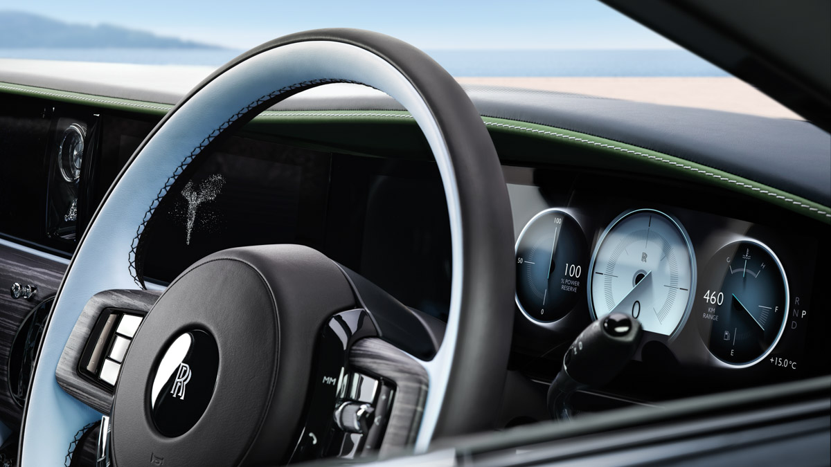 Наряду с этой изысканной деталью, охватывающей всю ширину пассажирского сиденья, расположена подсвеченная приборная панель — передовая технология, впервые представленная в Ghost в 2020 году. В Ghost Series II новый дизайн подсвеченной приборной панели вдохновлён звёздами, запечатлевая движение ночного неба в дизайне, напоминающем покадровую съёмку небесных тел. Клиенты также могут создать свой собственный мотив подсвеченной приборной панели в сотрудничестве с дизайнерами Bespoke марки.