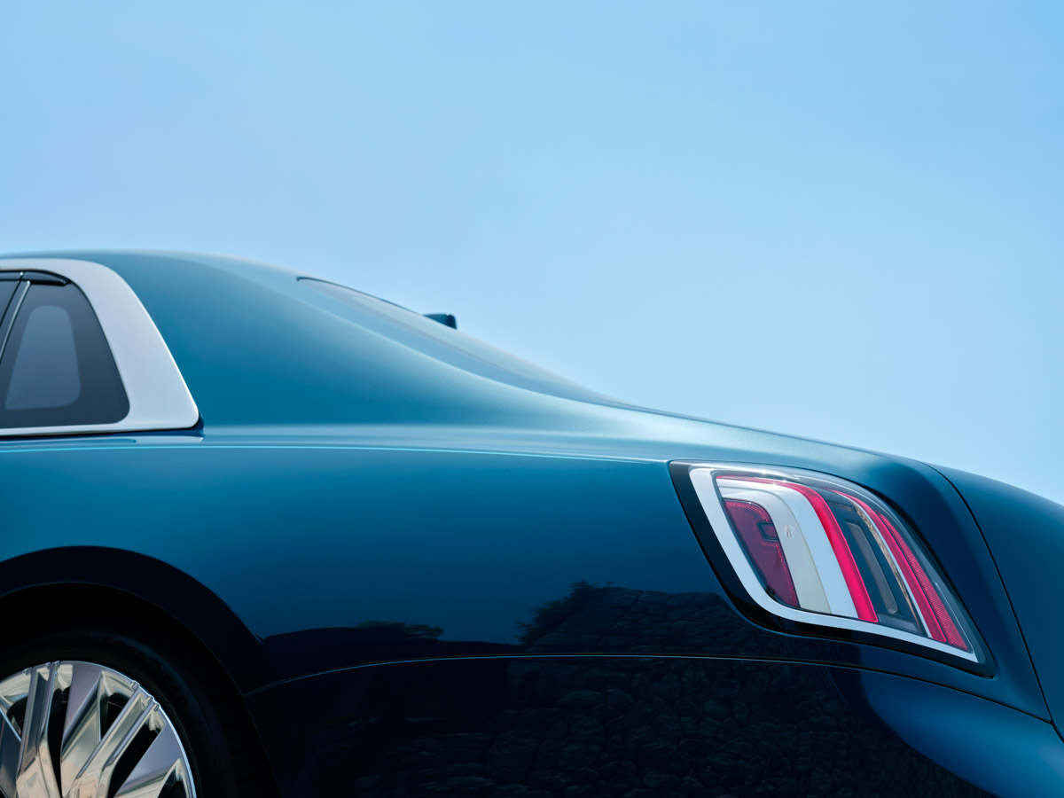 Сзади Ghost Series II отличается новой конфигурацией задних фонарей, гармонично сочетающей боковые и задние поверхности. Эта конструкция вдохновлена Spectre: каждая из них включает в себя две выразительные вертикальные световые панели, обрамлённые изогнутым хромированным элементом с едва заметной монограммой в виде двойной буквы «R».