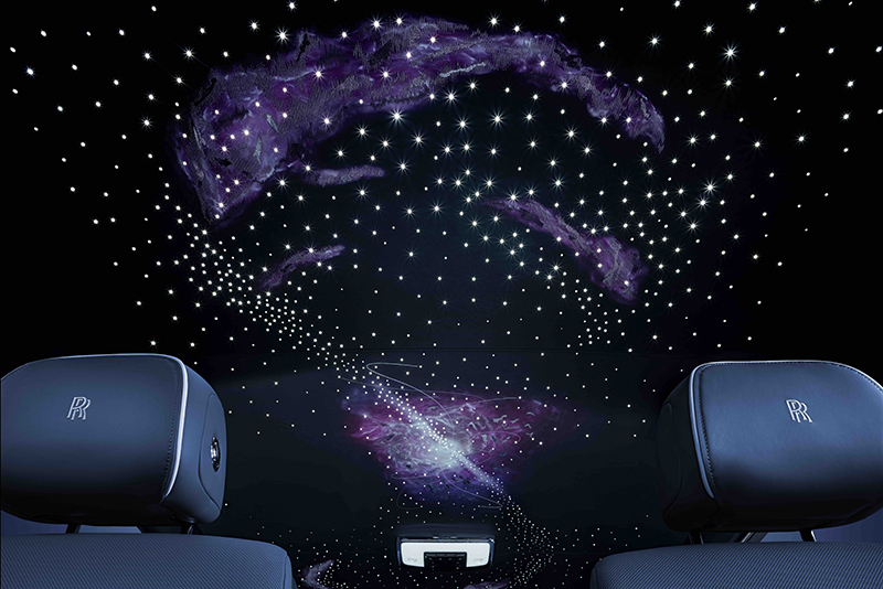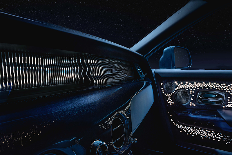 На внутренней обшивке дверей появился узор, представляющий собой закручивающуюся воронку из скопления звёзд. Перфорация с подсветкой, создающая сотни сияющих огней, в сочетании с контрастной кожей создаёт дополнительную глубину, формируя волшебную атмосферу, даже когда иллюминация не включена.
