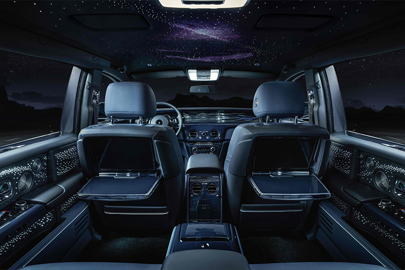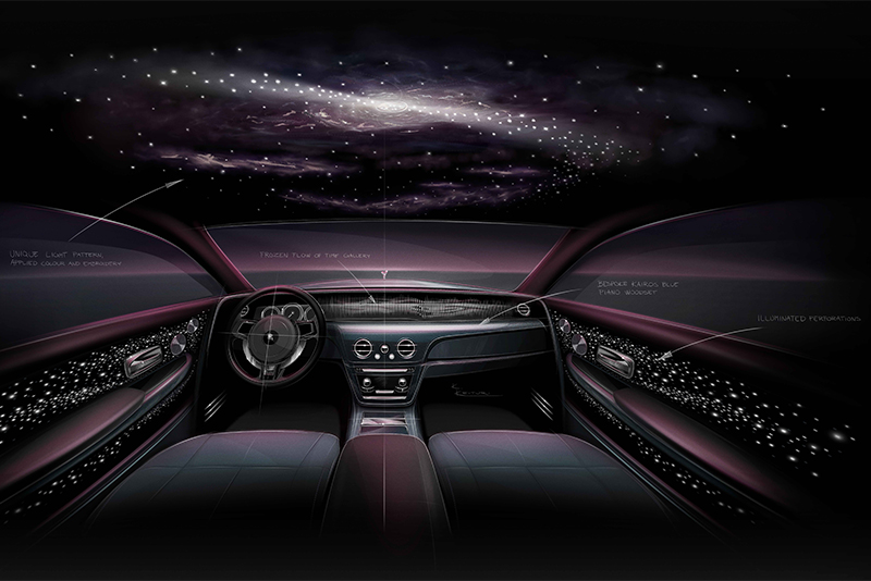 Концепция Phantom Tempus построена вокруг ряда феноменов, связанных с космосом и понятием времени. Пульсары, астрономические объекты, найденные в 1967 году, стали одним из ключевых элементов дизайна. Их можно найти в самых недрах космоса – ближайший расположен на расстоянии 280 световых лет, или 2703 триллионов километров от Земли. Пульсары – это быстро вращающиеся нейтронные звёзды, которые обладают сильным магнитным полем и испускают импульсы электромагнитного излучения с выверенной частотой, что делает их самыми точными часами в мире. Именно пульсары будут вышиты на потолке автомобилей Phantom Tempus, дополняя звёздное небо из оптоволоконных нитей, – этот дизайн получил название «Pulsar Headliner».