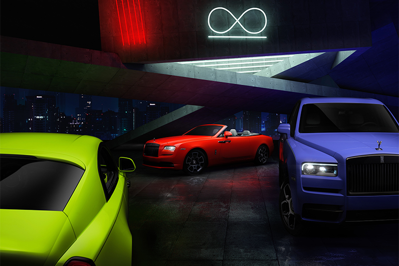 Яркая палитра «Неоновые ночи» опровергает стереотипы о том, что модели Black Badge должны быть исключительно чёрными. В неё вошли три смелых оттенка, каждый из которых разработан индивидуально для одной из моделей Black Badge: ярко-зелёный Lime Rock Green для Wraith, насыщенный красный Eagle Rock Red для Dawn и глубокий синий Mirabeau Blue для Сullinan.