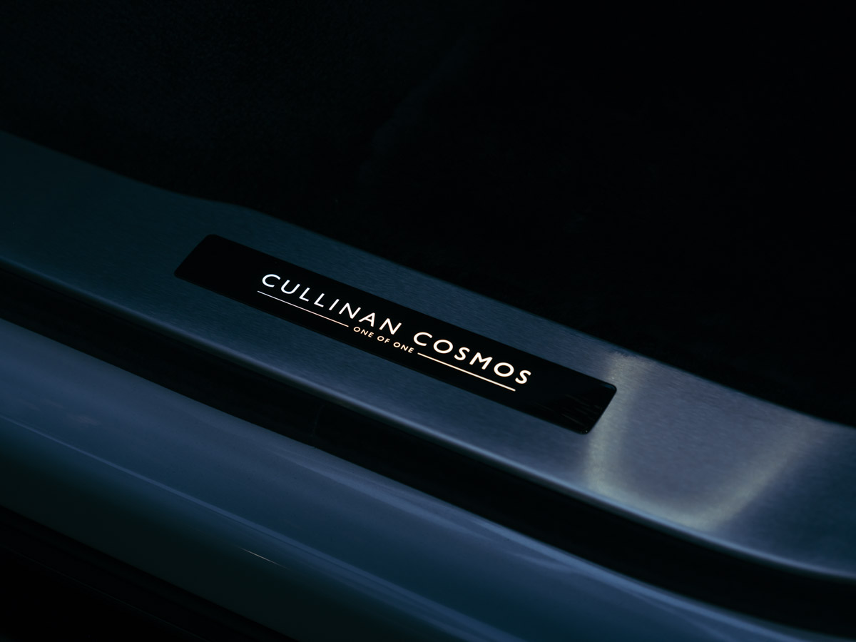 Cullinan Cosmos оснащён первой в истории Rolls-Royce полностью расписанной вручную обивкой потолка Starlight. На её создание ушло более 160 часов, а роспись полностью выполнена от руки одним из штатных художников марки. Она представляет собой неземную интерпретацию Млечного Пути – туманной полосы звёзд и космической дымки, видимой в ночном небе. Цветовая гамма подобрана в соответствии с цветовой палитрой интерьера Bespoke.