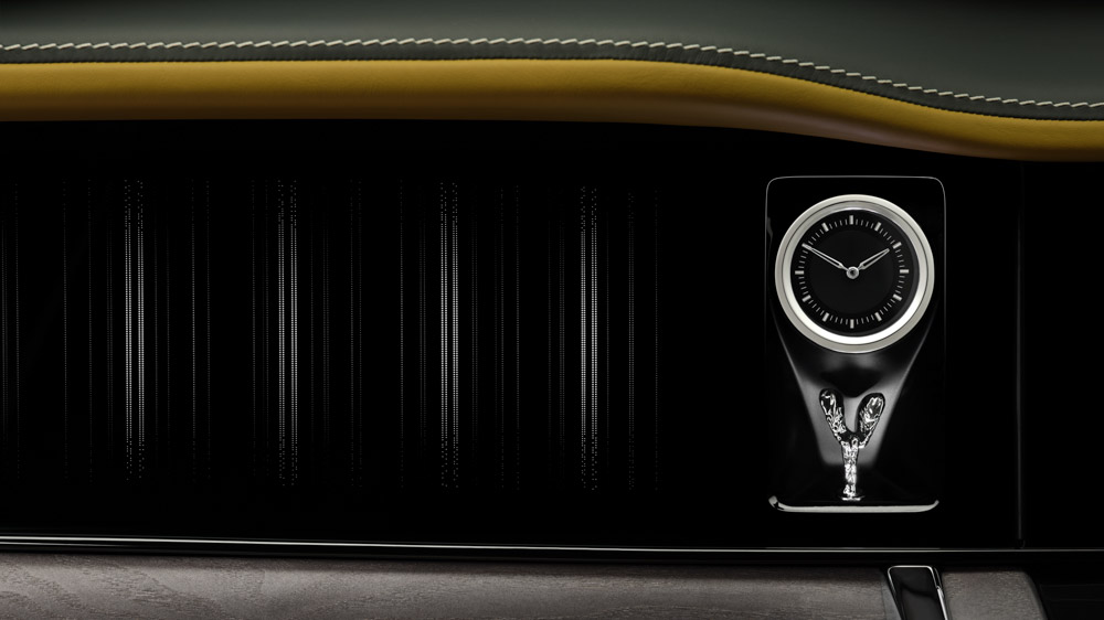 Рядом с центральным информационным дисплеем на передней панели со стороны пассажира находится новый шкаф с часами «Дух экстаза». Эта уникальная витрина с встроенными часами демонстрирует как аналоговые часы, так и подсвеченную фигурку «Духа экстаза». Фигурка изготовлена из цельной нержавеющей стали и установлена на отдельном подиуме с матово-черной задней панелью и глянцевыми боковыми панелями, создающими эффект отражения.